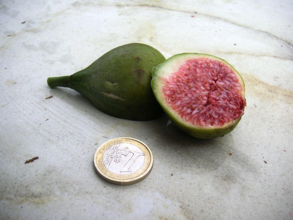 Sie trägt reichlich relativ große, grüne Früchte mit roten Fruchtfleisch