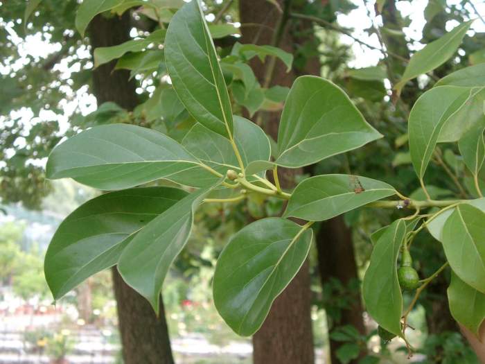 Zur Lorbeerfamilie gehört der Kampferbaum. Das Laub riecht beim Zerreiben etwas eigenartig aromatisch.