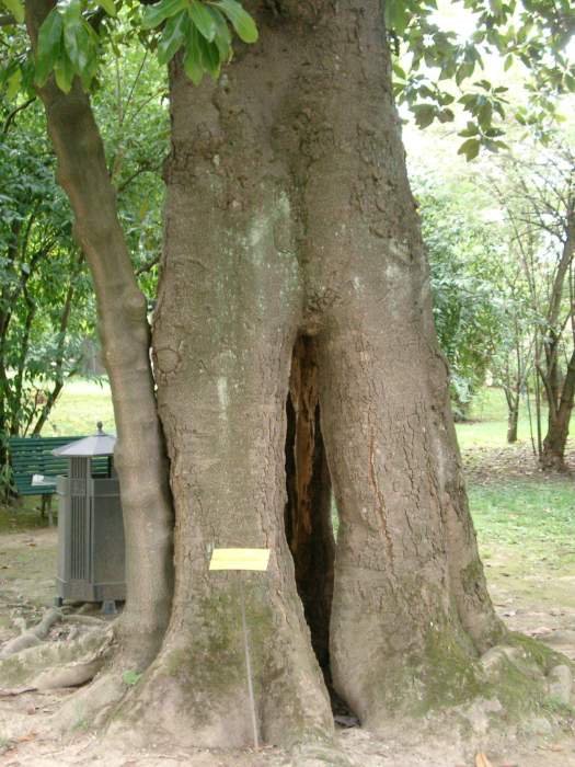 Beeindruckend auch eine riesige immergrüne Magnolie mit hohlem Stamm