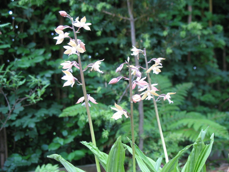 ein Calanthe-Kuzu-Hybride in Blüte. Diese Hybriden gibts in vielen Farbstrains und man sollte sie deshalb blühend kaufen. Habe ich bei der Erstausstattung nicht gemacht, werde aber bei eventuellen weiteren Pflanzen darauf achten![]()