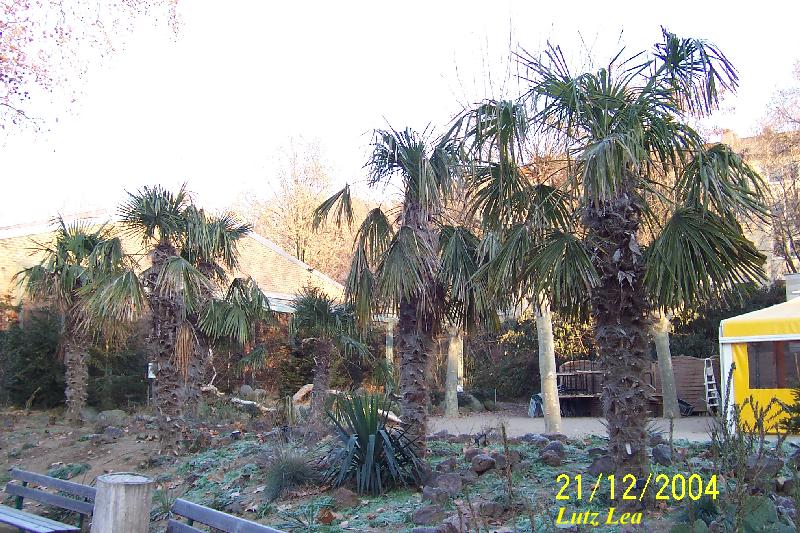 leider in einem nicht gerade erfreulichem Zustand befinden sich die 11 Hanfpalmen im Frankfurter Zoo, welche im Frühjahr 2003 ausgepflanzt wurden.