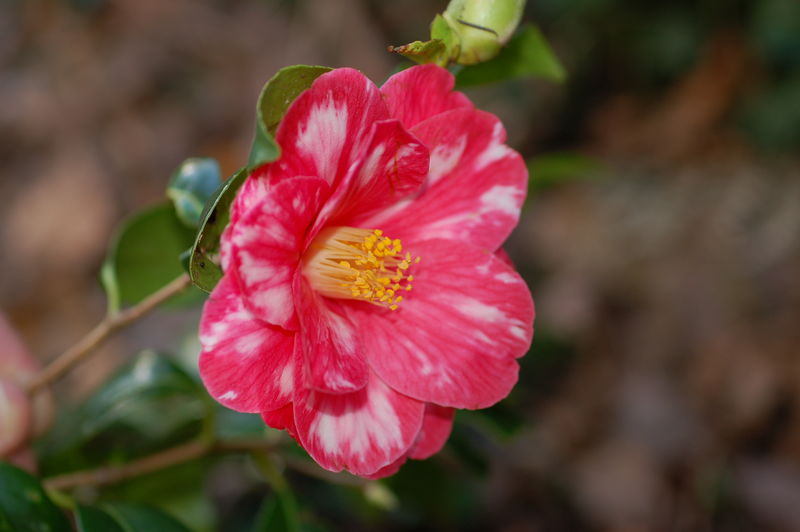 /*Camellia japonica-Hybride*/ mit weiß gefleckten Blütenblättern