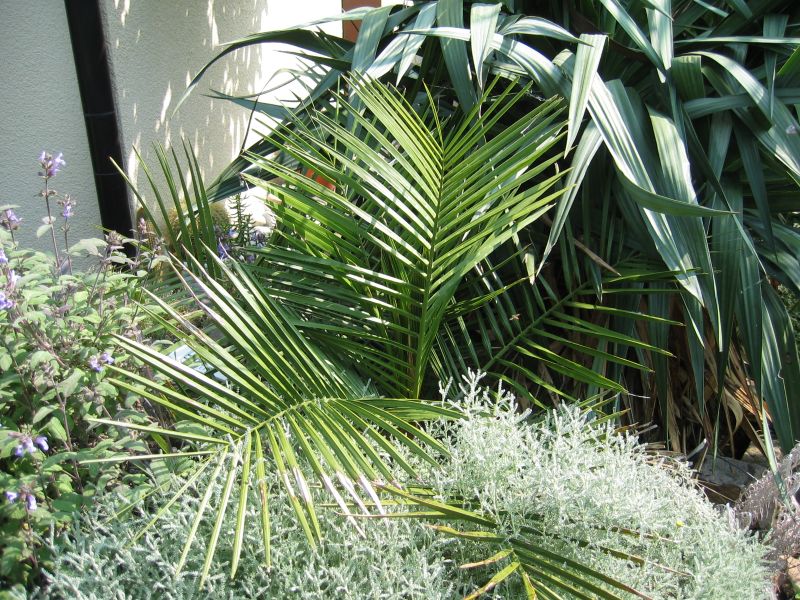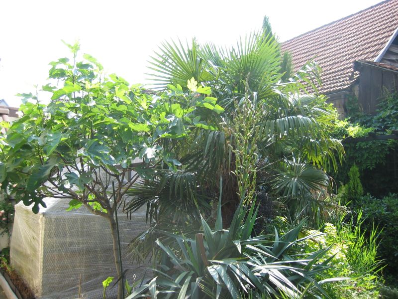 die "Monstertrachy" nimmt bald das gesamt Bild ein...+ Yucca mit Blütenstengel..