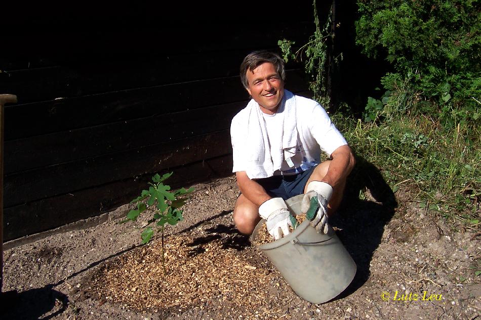 Geschafft - noch kleine Feigenpflanze im Boden und gleich gemulcht.