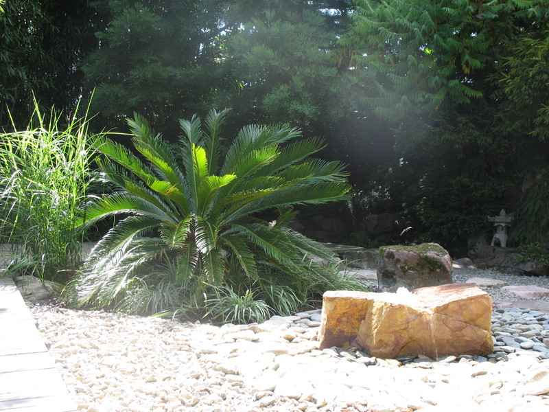 ! Ausschnitt aus meiner heute fertiggestellten aktuellen Arbeit. Ein Teich - von mir vor exakt 20 Jahren erstellt - wurde aus verschiedenen Gründen zugeschüttet und die Fläche neu gestaltet. Dabei wurde eine alte Kübelcycas ausgepflanzt und integriert. Erstmals habe ich dabei den aufpumpbaren "Greensafe" von Anfang an mit eingeplant und der Untergrund für die Maxi-Ausführung (2 x 2 x 3 m) vorbereitet, d. h. ein Geviert aus imprägnierten Kanthölzern und innen mit Styropor isoliert. - (Hoffentlich gibts diesmal keine Lieferschwierigkeiten) -