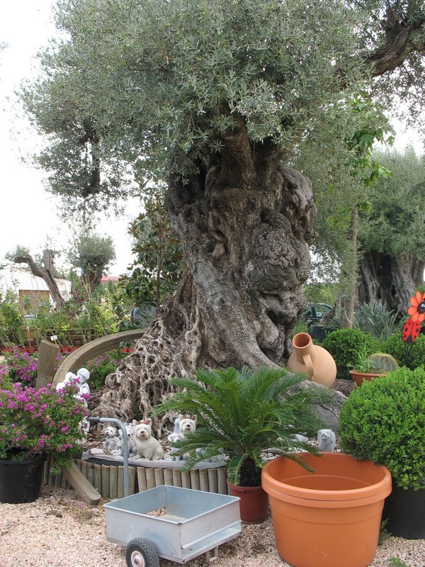 in den zahlreichen Gärtnereien entlang der Straßen gibts Oliven in allen Größen zu kaufen, manche haben sogar Hunderte an Solitärs auf Lager. Da dürfte wohl das Angebot die Nachfrage oft übersteigen - und trotzdem werden da meist mehrere Tausend Euro schon für mittlere Größen verlangt.