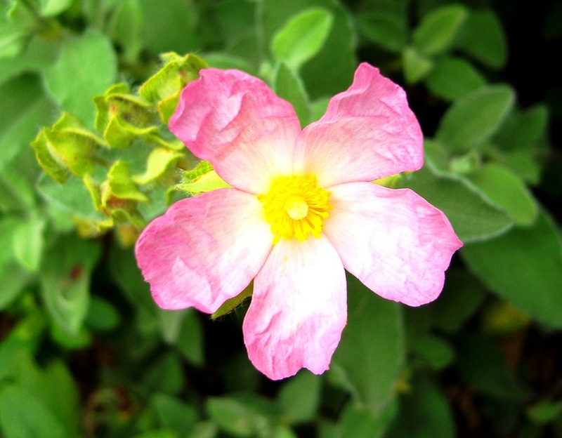 /*Cistus "Grayswood Pink" (syn. "Barnsley Pink", "Chelsea Pink")*/ die Blüten sind in Natura etwas kräftiger Rosa aals hier bei intensiver Sonnenstrahlung: