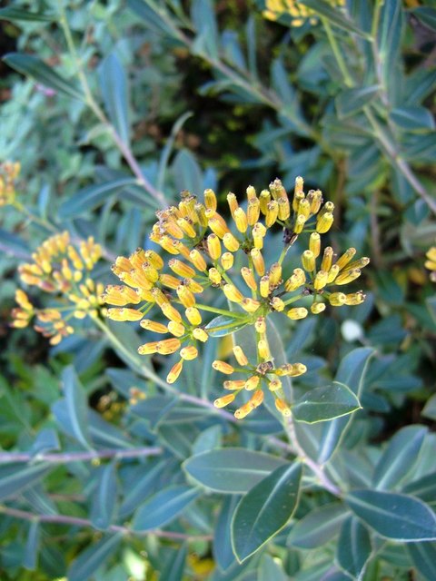 Auch das Strauchiges Hasenohr /*Bupleurum fruticosum*/ ist zu empfehlen und ziemlich winterhart: