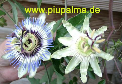 Als erstes meine Passiflora caerulea, die seltsamerweise an einem Trieb weiße Blüten und an den restlichen Trieben normale weißblaue Blüten entwickelt hat. Leider ist die Pflanze diesen Sommer vertrocknet: