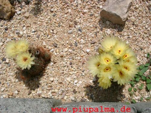 Das sind zwei meiner ausgepflanzten Notocactus schlosseri, die den letzten Winter ebenfalls ohne Schutz überstanden haben. (Tmin war -9,3°C mit Schnee, Regen und Eistagen) Sind ganz schön hart im Nehmen diese Notocactus, die ich bereits seit 5 Jahren immer draußen überwintere:
