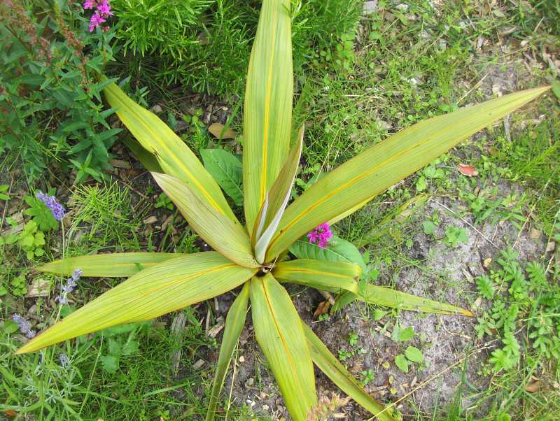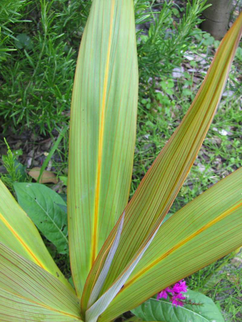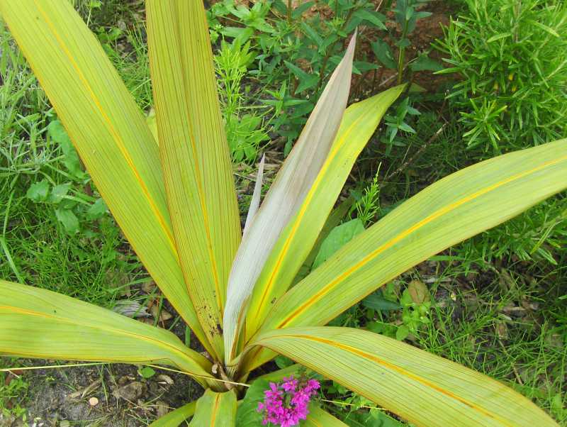 Schön anzusehen, Cordyline australis indivisa mit den warmen, ockerfarbenen Streifen...