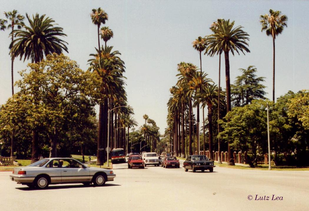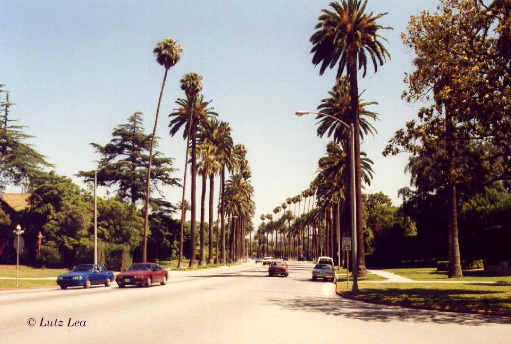 Villengegend in Los Angeles im Jahre 1990 - überall sehr hohe und alte Palmen!