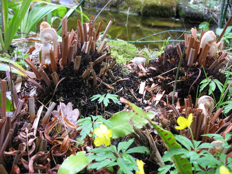am Rand meines "Hoftümpels" steht Osmunda regalis seit geraumer Zeit in den Startlöchern und zögert ob der verhaltenen Temperaturen seine Wedel endlich zu entrollen.