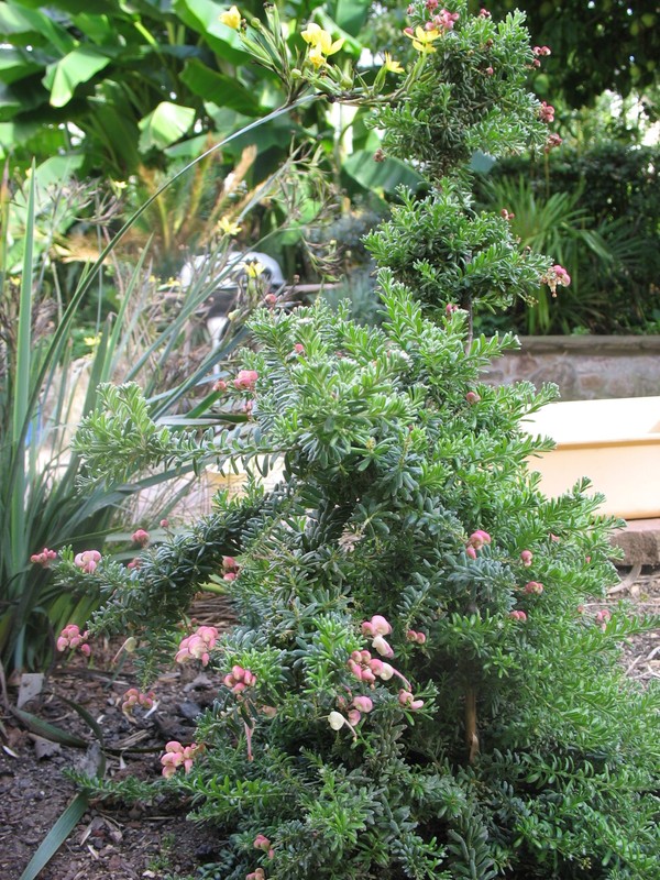 Grevillea 'Red Solento' in Holland mit der Aufschrift "winterhardy" gefunden zum ganz kleinen Preis. Aber das ist hier beim weltgrößten Pflanzenumschlagsplatz immer die Frage: wer hat wo auf welchen Kontinent da was aufs Etikett geschrieben. Nach meiner Recherge wohl nicht gerade die härteste Sorte.