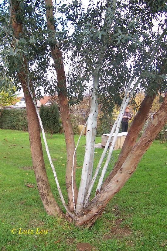 bei unserer Exotenfreunde-Standorttour im Mainzer Großraum stiessen wir am vergangenen Samstag auch auf diesen markanten mehrstämmigen Eucalyptus, vermutlich 'E. gunii' - der seit etwa 1975 in einer Kleingartenanlage bei Bischofsheim (zu Rüsselsheim) anscheinend alle bisherigen Winter nahezu unbeschadet überdauerte (!!!).