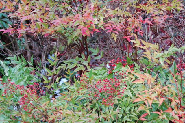 Zu dieser Jahreszeit einer meiner Lieblingspflanzen: /*Nandina domestica*/ .Trotz des Schnees und der Eiseskälte unverwüstlich.Die unten abgebildete Pflanze hat viele Jahre auf dem Buckel und sieht eigentlich immer gut aus (ca 2m hoch und 1m breit,Alter ca 20 J.)