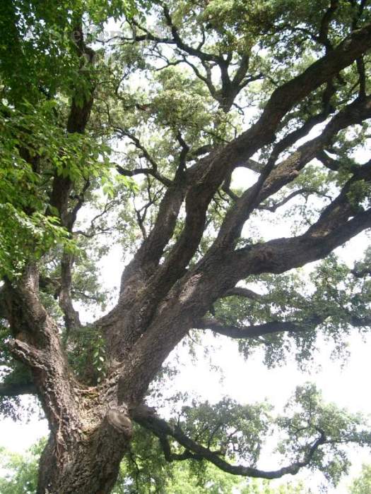 Auch eine mächtige Steinheiche gibt es, deren Stamm auf dem Bild einer Hand ähnelt