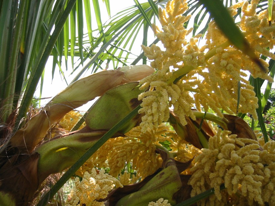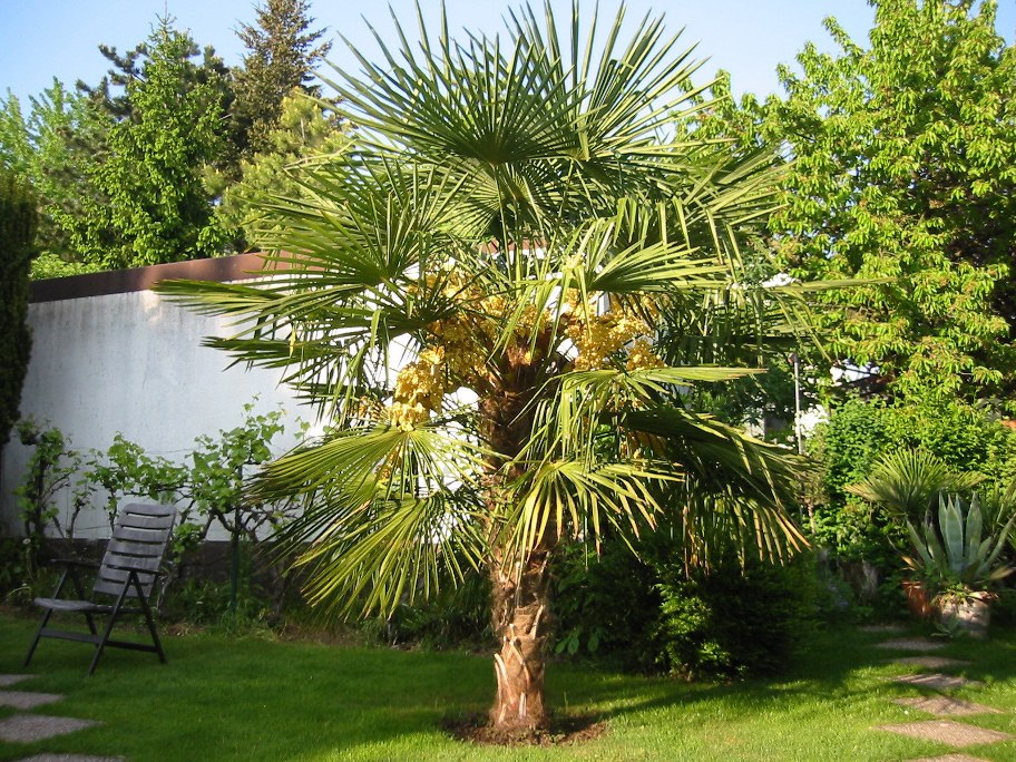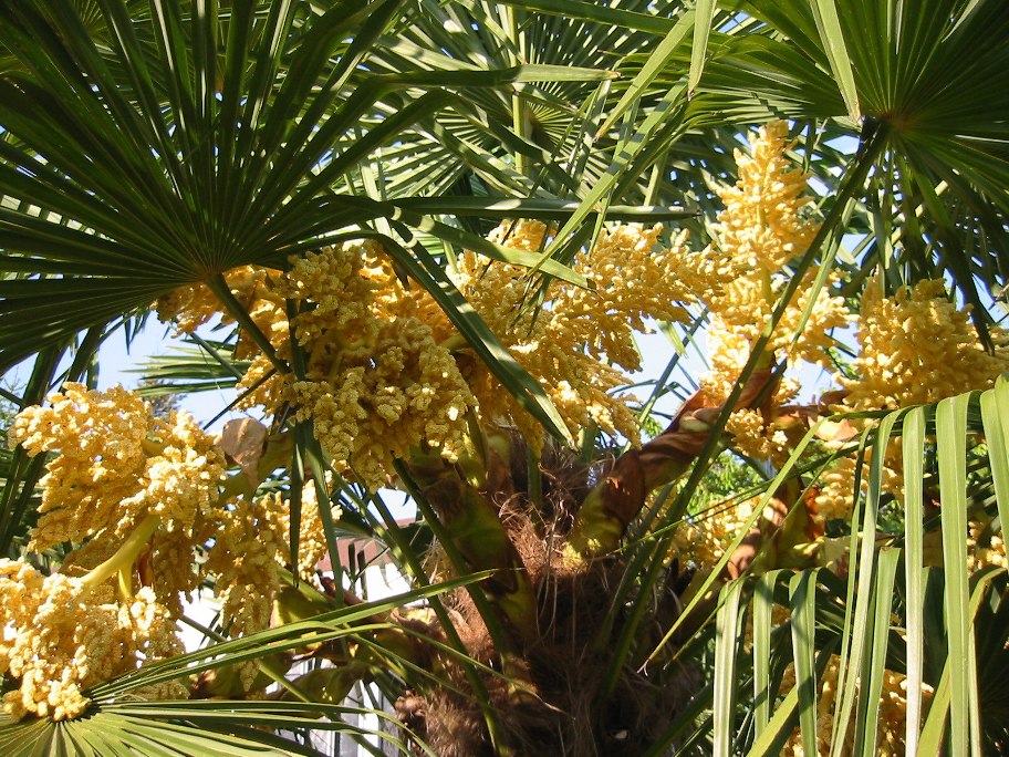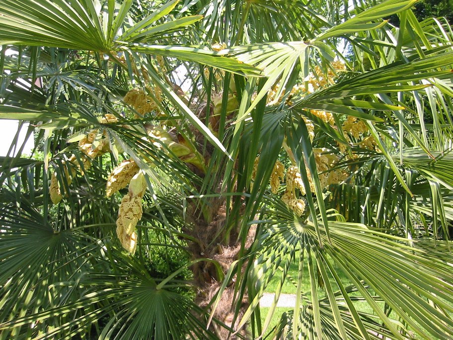 Man beachte die Länge der Blütenstände, die mit 90cm teilweise länger als die Blattstiele der Trachy sind!