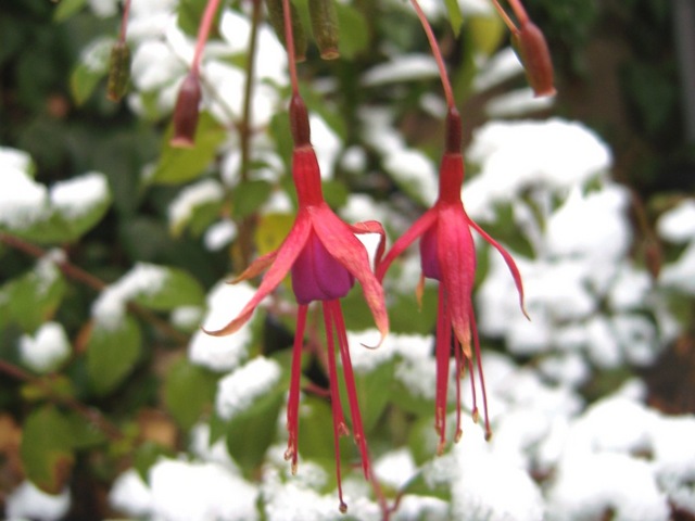 Scharlach-Fuchsie - Rot die Blüte, weiß der Schnee