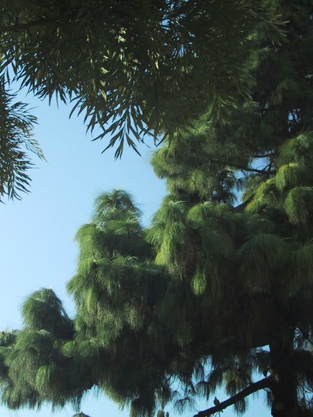 Im Vorbeifahren erwischt: eine Koniferenrarität: die mexik. Pinus patula mi der austr.Silbereiche (grevill.rob.)
