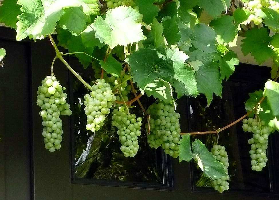 aus den Sümpfen Nordost-Polens zurückgekehrt, begrüßte uns die inzwischen reifen Weintrauben (/*Vitis vinifera*/) über der Haustür. Auch andere Gewächse spendeten Freude (siehe Fortsetzung)