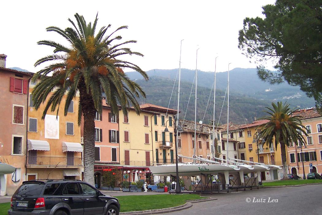 etwas weiter nördlich von dem in "Teil 6" vorgestellten Ort 'Toscolano/Maderno' liegt die Stadt 'Gargnano'. Auch hier findet man schnell alte Phoenix-Palmen, Pinien, Zedern, Oliven und besonders viele hochstämmige Ciruspflanzen am Uferbereich/Hafen.