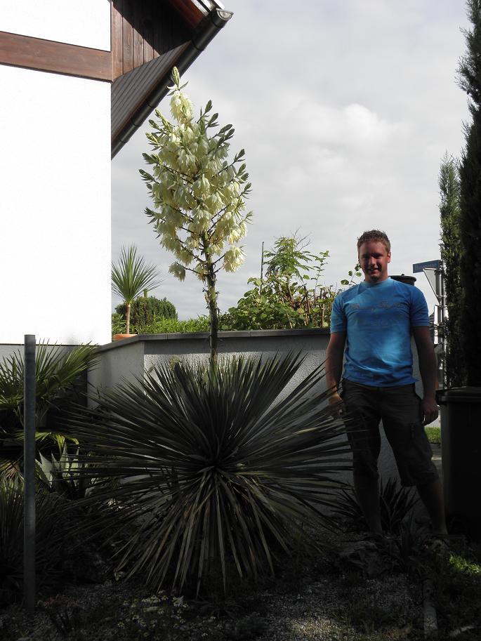 Begonnen haben wir bei mir im Garten. Die Blüte der /* Yucca rostrata */ ist mittlerweile leider schon wieder am Verblühen, am Samstag morgen war sie knapp vor der Vollblüte: