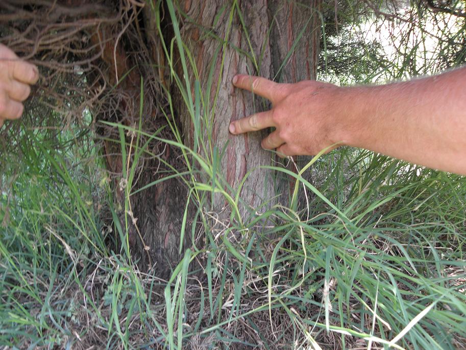 Stamm der /* Cupressus sempervirens */. Alle Exemplare hatten rund 40 cm Stammdurchmesser. Die müssen wohl schon einige sehr kalte Winter hinter sich haben, vermutlich sogar schon 1962/63.