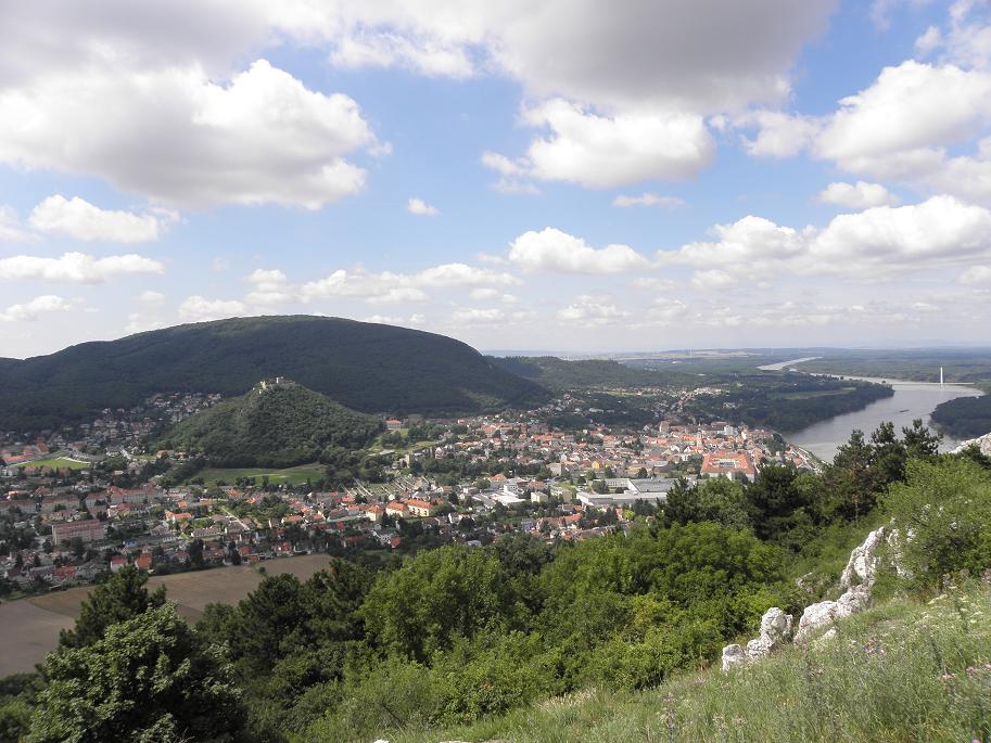 Zum Abschluss sind wir dann noch auf den Braunsberg raufgefahren. Von dort hat man einen schöne Überblick auf unsere Nachbarstadt Hainburg an der Donau. Hainburg ist eine herrliche mittelalterliche Stadt, deren Burg, die komplette Stadtmauer und alle 12 Türme und 4 Stadttore noch erhalten sind. Damit es in Europa eine Besonderheit. Die Stadt liegt sehr geschützt durch die umliegenden Berge eingebettet. Vor allem der Braunberg, auf dem wir hier gerade stehen, dominiert das Stadtbild von Hainburg mit seinen steilen und felsig-kahlen WSW bis S-Hängen.