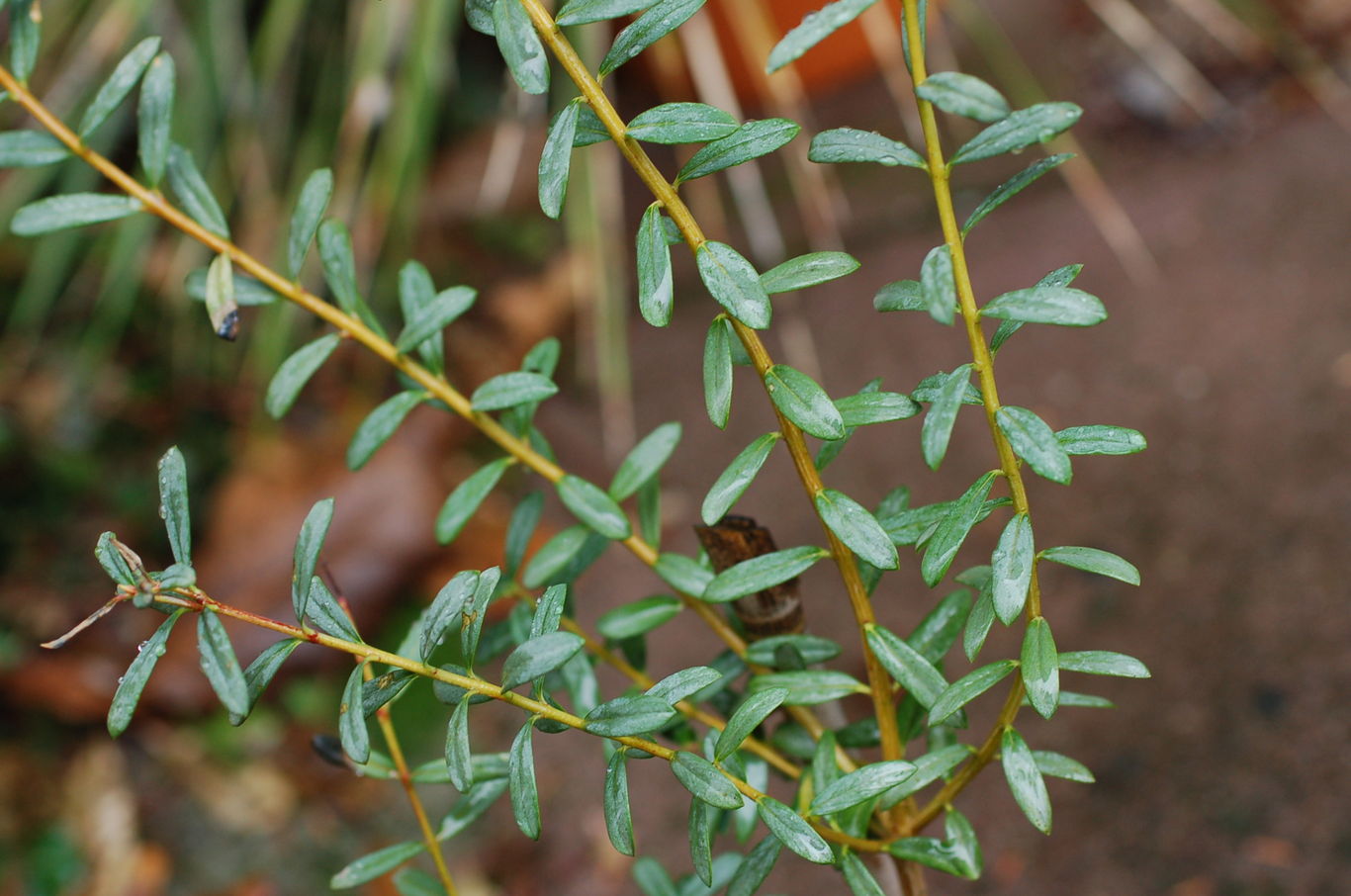/*Daphne aurantiaca*/, früher D.calcicola hat nicht nur gelbliche Blüten,sie hat auch eine gelbliche Rinde und dazu blaugraue Blättchen: Wirklich exotisch!!