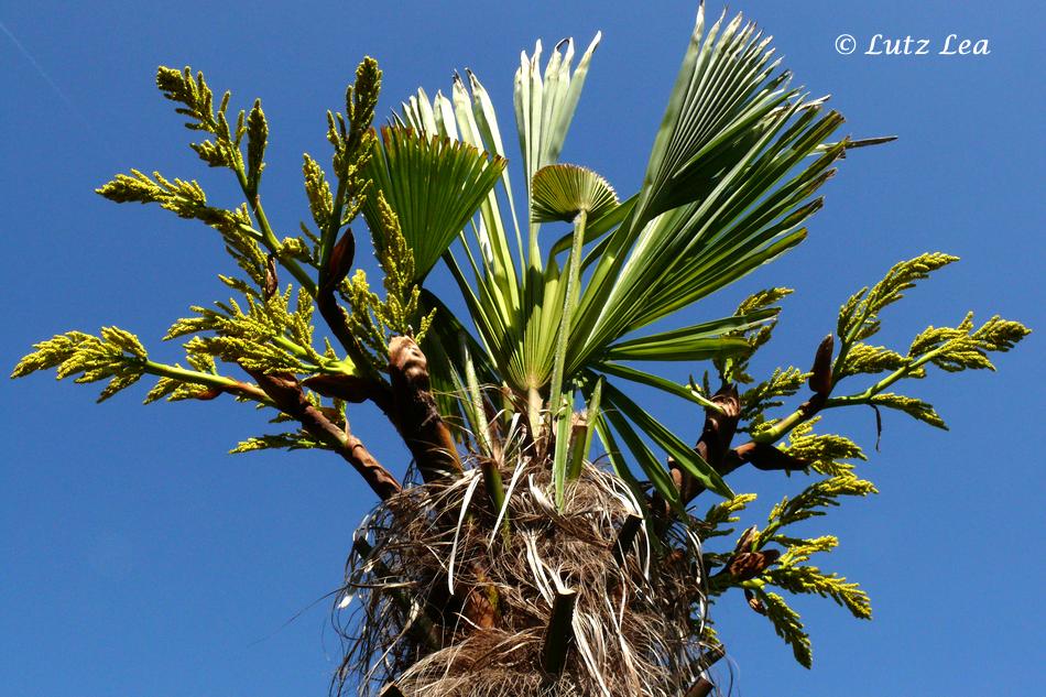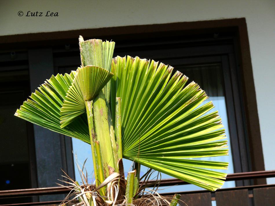 Nach Totalblattverlust (-18,2°C am 7.01.'09) wollte ich mal wissen wie viele Neufächer der Trachy im Frühjahr und Sommer geschoben hat. Ich hatte die Vegetationsperiode über ausgewogen gewässert und gedüngt - scheint sich wirklich gelohnt zu haben!: