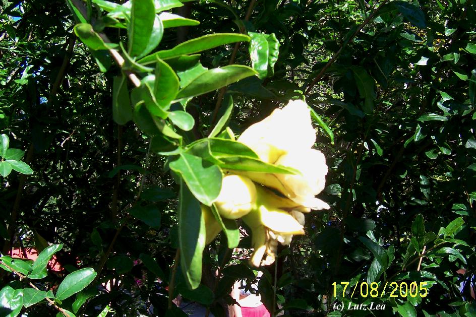 Wußte gar nicht das es den gibt - weisser ganz leicht gelblich gefüllter 'Punica granatum'(!!!).