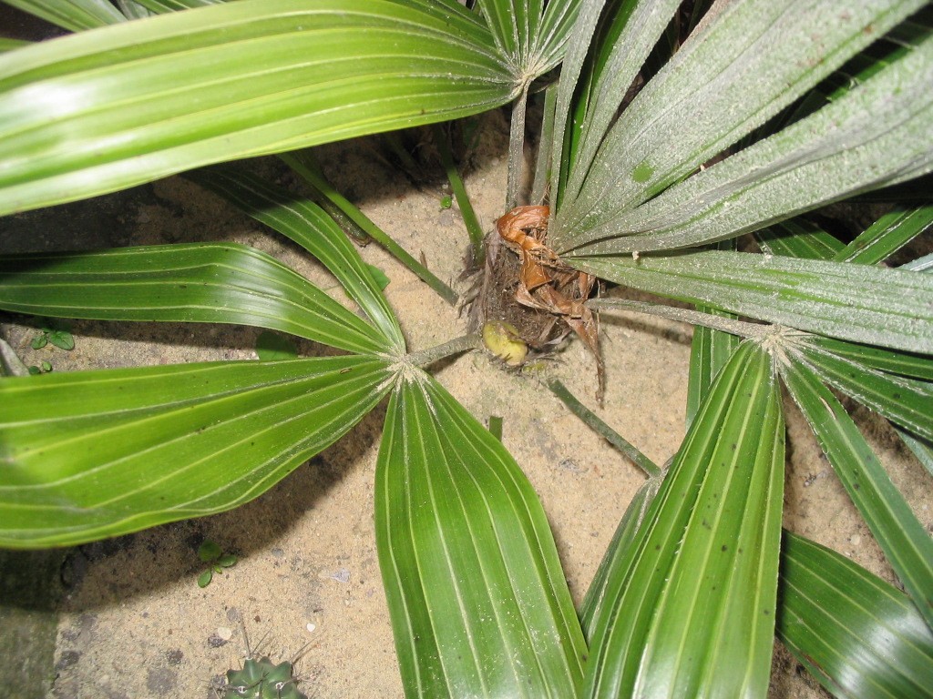 eine seit vier Jahren ausgepflanzte Rapidophyllum-hystrix ist gerade dabei eine Blühte zu schieben. Es ist das erste mal, daß sie blüht. Habe es eben erst entdeckt und gleich ein Foto gemacht. Die Pflanze hat noch nie Winterschutz bekommen und Temperaturen bis -17° ohne Schäden ausgehalten.