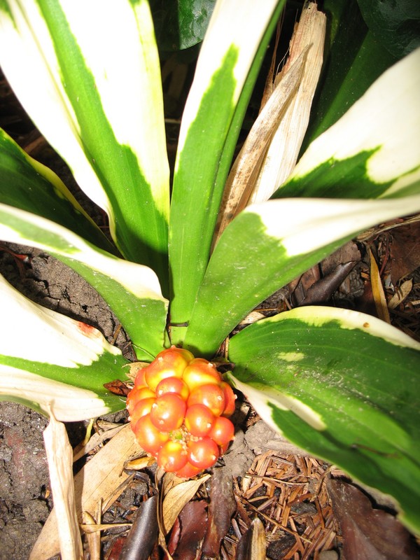 Sogar die Fruchtstände sind panaschiert bei /*Rohdea japonica 'Washikakuma'*/