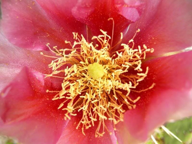 Als Dankeschön diesmal 'ne Scheibenopuntienblüte /*Opuntia phaeacantha 'Kirschrot'*/ - close up: