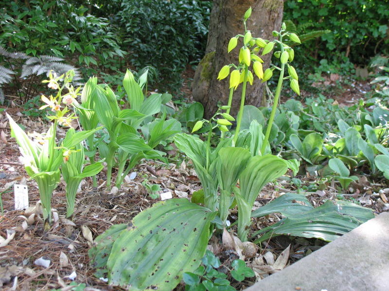 endlich ist die Wärme auch im Auwald angekommen. Von Gelb war da heute Vormittag noch nichts zu sehen. Links die seit Längeren blühende Calanthe oblanceolata, rechts kommt C. sieboldii in Fahrt und dazwischen macht sich der Frauenschuhhybride 'Aki' bereit