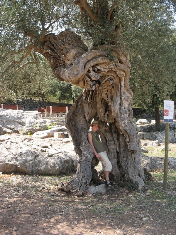 Oliven, Mandelbäume, Johannesbrotbäume und Feigen gehören zur Mallorquiner Landschaft und sind allgegenwärtig. Wenn ich auch kein Straßenbegleitgrün zeigen wollte ist das bei den Ölbäumen was anderes - sie stehen nicht einfach entlang der Straßen, sondern oft windet sich die Straße um sie herum, wie auf den engkehrigen Serpentinen über den Coll nach Sóller. Mit Sohnemann mache ich mir dabei im Sekundentakt immer den Sport die richtige für Garten zuhause auszusuchen. Leider kann man dort nicht zum Fotografieren anhalten. Wurde dann später beim bekannten Kloster Lluch nachgeholt