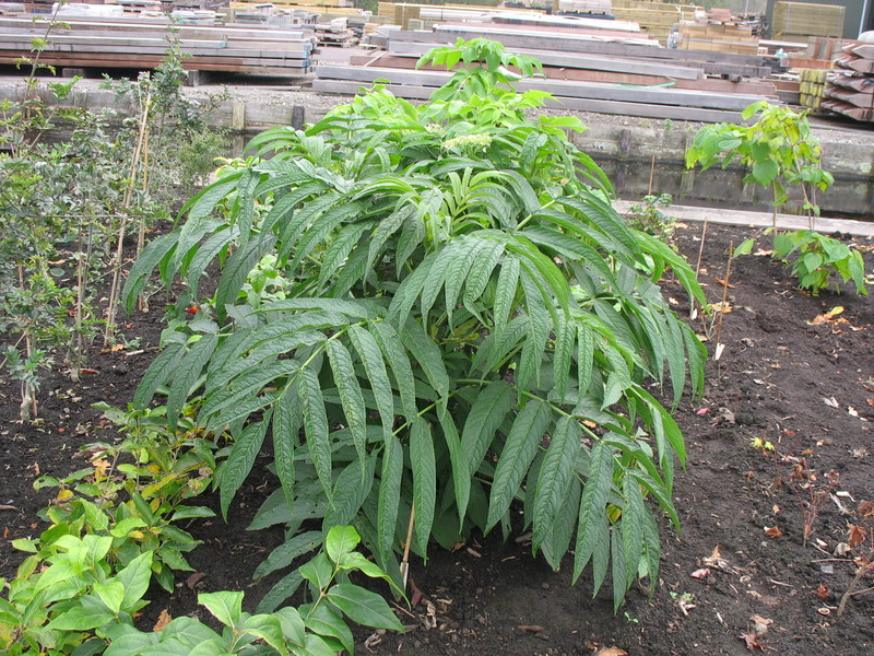 trägt dieser Sambucus. Fragt mich nicht welche Art oder Sorte!! Aber auch ein Hollunder kann eine durch und durch exotische Erscheinung haben!