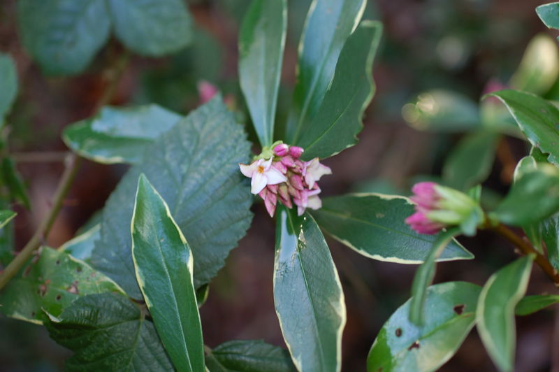 Ebenfalls duftend und angeblich härter als die Stammform: die Var. /*Daphne odora Aureomarginata*/,sie blüht etwas später als D.bholua