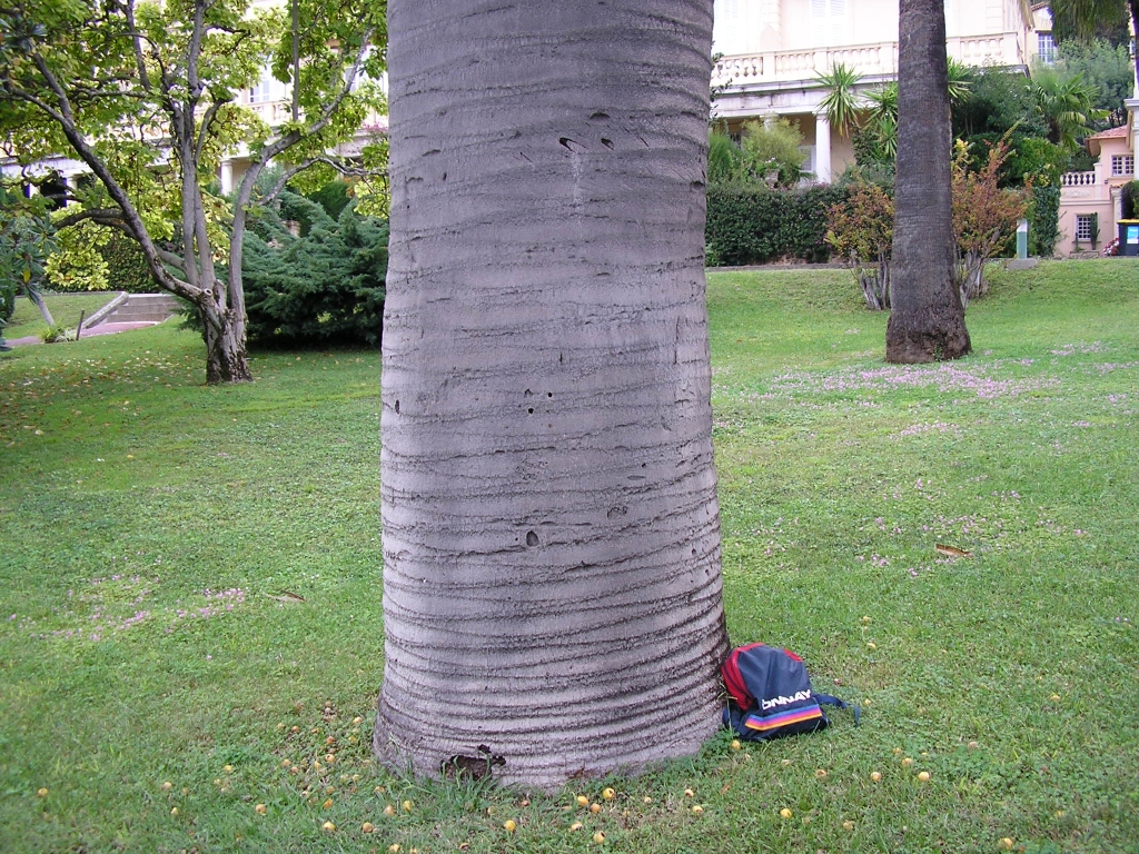 Das erste mal, dass ich eine Jubaea fand in Cannes, die freien Zutritt ermöglichte. Oft stehen sie in alten Gärten, versperrt durch Zäune und Gatter. Es war etwas dunkel, daher die schlechtere Bldqualität. Da taucht sie auf: