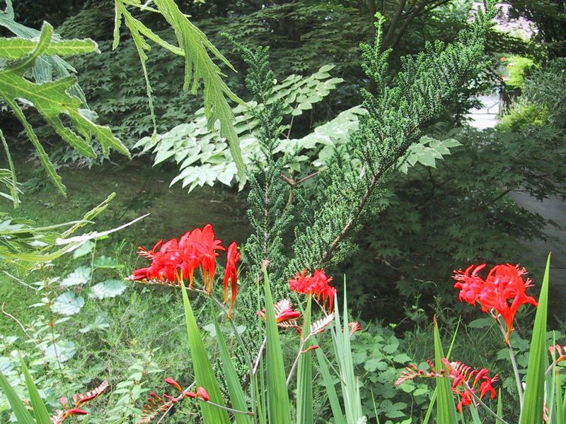 Taxus baccata Amersfoort mit Aralia elata variegata u. Crocosmia