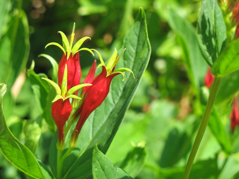 immer wieder ein Erlebnis ist das Erscheinen von /*Spigelia marilandica*/. Recht unauffällig ist das Laub der Pflanze, ein "sauberer" Gartenbesitzer hätte sie sicher längst als Unkraut entfernt.