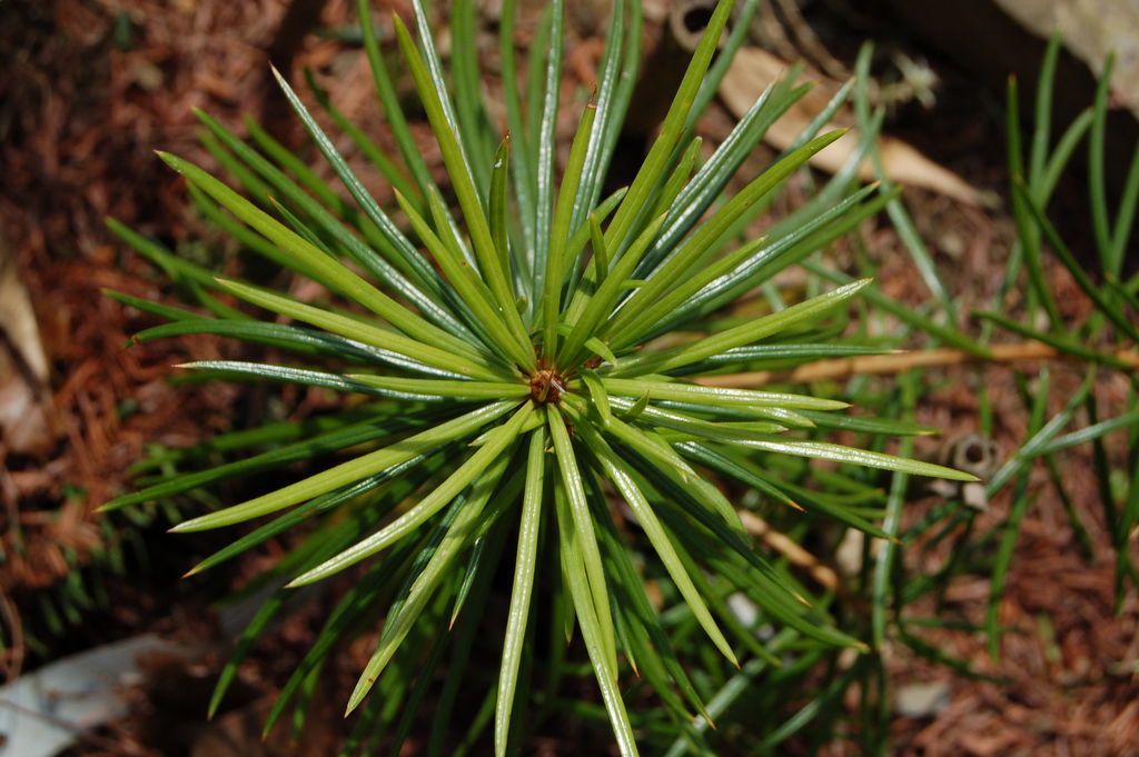 dennoch immer wieder sehenswert:/*Cathaya argyrophylla*/ hat den letzten Kaltwinter schadlos überstanden. der Gipfeltrieb erinnert stark an eine Schirmtanne (Nadeln bis 12cm!!!!)