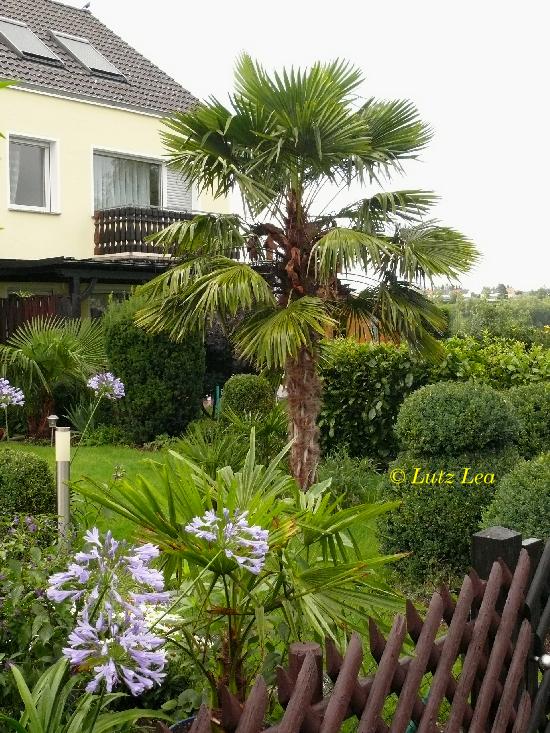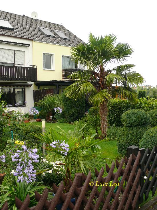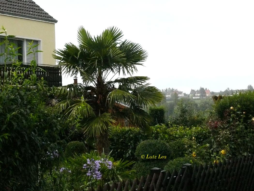 Wie mir die Besitzerin im einem langen Gespräch mitteilte, wurde die damals kleine Hanfpalme mit Herkunft aus Ascona (Lago Maggiore) gleich ausgepflanzt und erhielt seither nur Stammschutz und an der Stammspitze ein wenig Frostschutzflies.