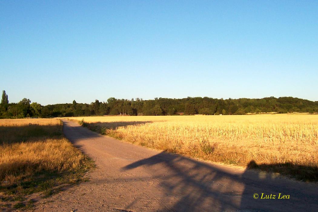 da mir alles weh tut vom vielen Schufften im neuen Exotengelände bei Egelsbach (ist aber ganz knapp noch Langener Gemarkung) heute "nur" ein Abendstimmungsbild in Übergröße vom verstaubten Zufahrtsweg durch ein abgemähtes Rabsfeld. Irgendwie wirkt dort die Landschaft leicht mediterran. Mir jedenfalls sehr anheimelnd. Diesen Rüttel- und Schüttelweg nehme ich gerne in Kauf, da er ja zum neuen Garten (Ex-Rocker-Ranch) führt - dort ist es einfach traumhaft, auch wenn noch sehr viel Arbeit zu tätigen ist.