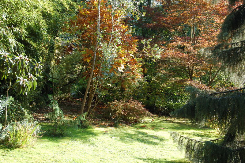 /*Daphniphyllum macropodum*/, dann Taiwania cryptomerioides, Quercus pontica, Eucalyptus archeri u. gunnii silver, re Picea breweriana