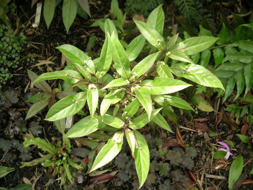 ist ein kleiner immergrüner Strauch aus Japan, bei dem die Blüten überwiegend mitten im Blatt an der Mittelrippe (Ruscus lässt grüßen) erscheinen. Die Blüten sind allerdings winzig, daher eine reine Liebhaberpflanze und weitgehend unbekannt. Vermehrung geht sehr einfach über Stecklinge - direkt an Ort und Stelle gesteckt.