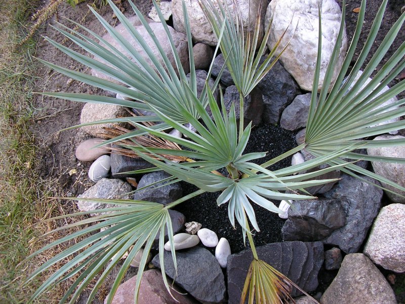Aber nicht nur Brahea wächst gut, auch die 6-jährigen Trachies wachsen bei reichlicher Wässerung wirklich sehr gut.