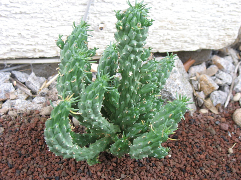 - schon wieder mal! - mit Euphorbia caput-medusae an der Stelle wo diesen Winter der Puya-Vesuch im Matsch endete![]()