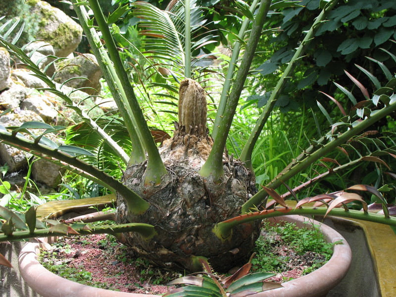 Encephalartos senticosus beginnt nach einer Pause im letzten Jahr nun doch wieder mit einem Durchtrieb